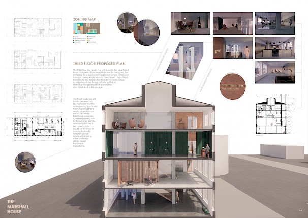 The Marshall House is a public place for local Icelandic families, tourists, and fish factory workers. The aim is to house 15 factory workers in the area, entertain visitors through a memorable culinary experience – by offering events such as seasonal food workshops relating to the fishing industry and a unique restaurant experience in the evening hours – and educate visitors as well with an immersive walk-through exhibition on the history of the fishing industry in Iceland.