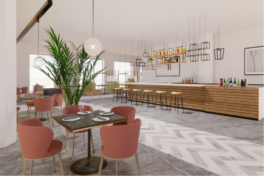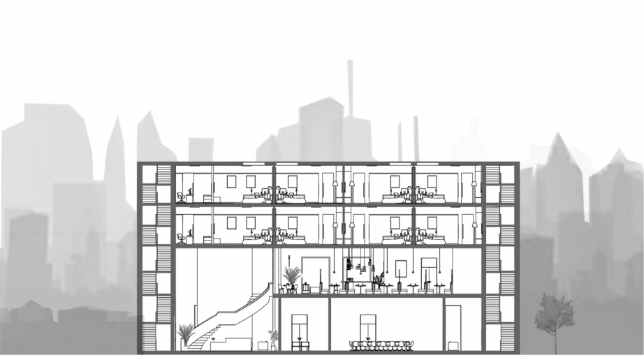 My building has four floors, the ground floor has a reception, art area, staff offices, and gift shop. the first floor is mainly a restaurant. The third and fourth floors are mainly hotel rooms, a gym, and storage rooms.