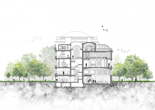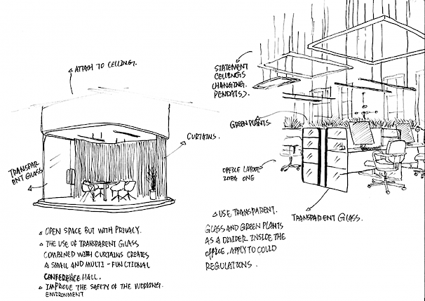 61 Whitehall is a Grade II* Listed Building designed by Sir Aston Webb and constructed in 1895. Proposing a post-pandemic 5 storey office building, which has a restaurant, bar, social space, office area, a collaboration room, meeting room, library and a self-service apartment for business travellers. The end users are 23-34 year old young workers who don't have a suitable workstation at home. The aim is to create a safe, healthy and comfortable work environment, in order to maintain employees' long-term physical and mental health in the future.