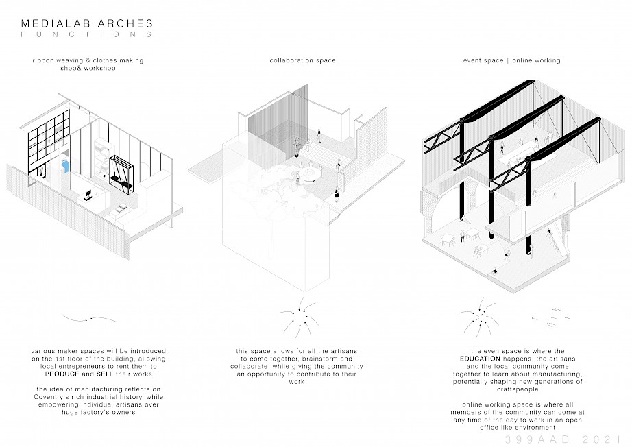 Medialab Arches is about embracing the history of the industrial Coventry and its hard-working labour communities, while looking into the future of manufacturing. It's about regaining the space and recognition which the heavy industry has stripped from the local citizens, when it pushed people's needs and ambitions aside. It's about reminding these communities and everyone around them that people are the strength and the backbone of any successful enterprise. And finally, it's about supporting the local artisans in pursuing their own careers while promoting sustainable manufacturing.
