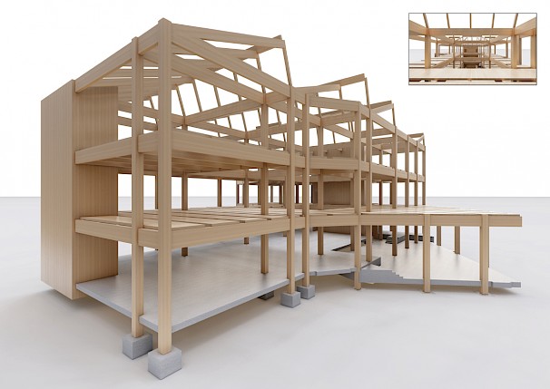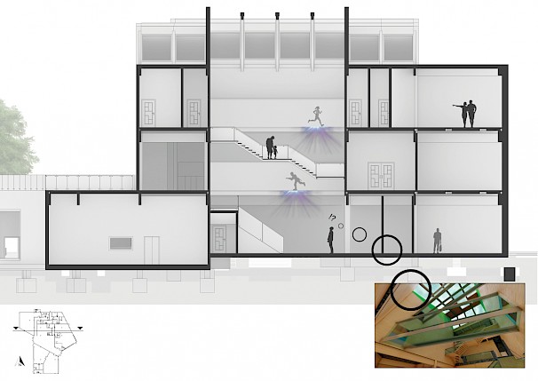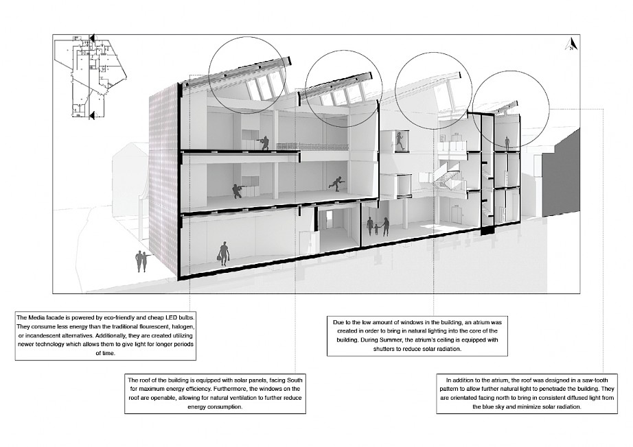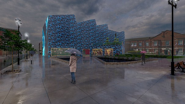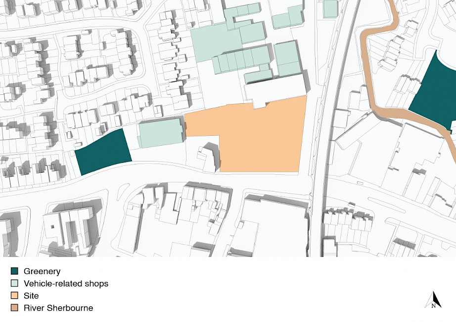 The project is located on Spon End, Coventry, a very vehicle-orientated site, filled with many car repair shops. It aims to rejuvenate the area by bringing more people and nature as well as attention to issues such as pollution. Considering the surroundings of the site, the goal is achieved by creating an Entertainment Centre, accompanied by a work/recycle shop where people could gather, relax and learn.