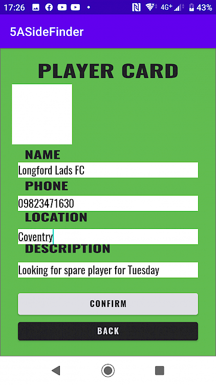 Finding new eager 5-a-side players and teams is just a swipe away with the 5-A-Side Finder app! Get connecting and get playing!