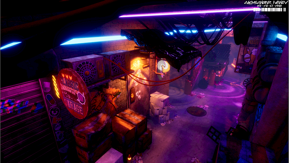 -This innovative idea helped me shape a creative story which afterwards gave me the freedom to build a world that suits my art style. The scene having a cyberpunk and steampunk look allowed me to pay attention to details when modelling and texturing each presented component. This furthermore enabled me to showcase my capabilities when it comes to creating realistic scenes.
