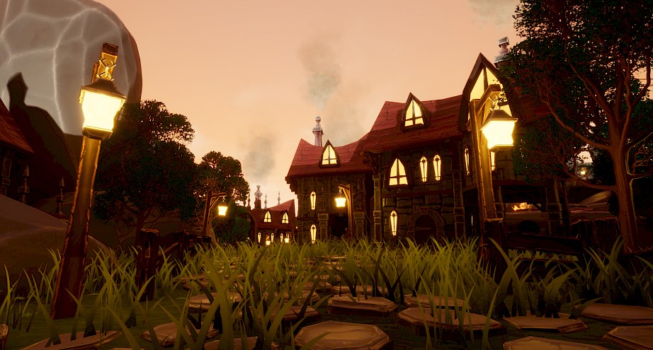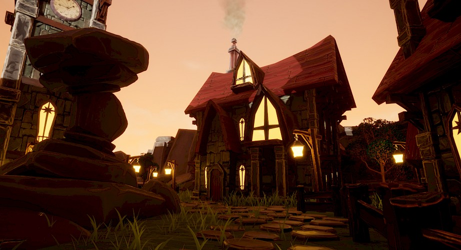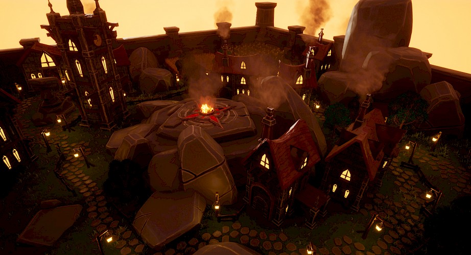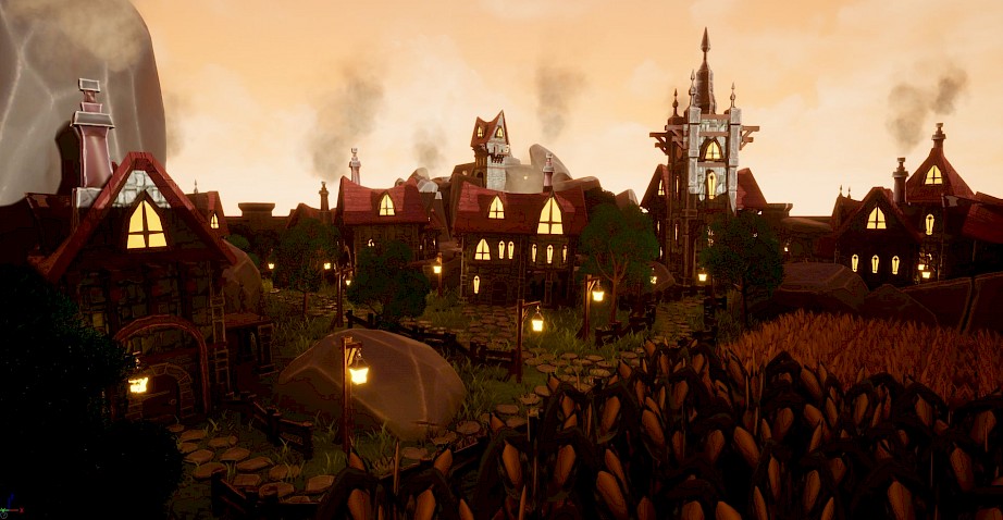 I was always interested in more stylized rather than realistic games. Therefore my FMP was heavily based on the stylistic choices of games like World of Warcraft, Spyro and Dungeon Defenders 2. Trying to find a middle ground between those was fairly challenging, for the sheer reason of them all being stylized yet emphasizing different aspects in their own ways. I have chosen to portray the medieval times, trying to retain the grim atmosphere, yet still keeping it cartoony and welcoming. The goal was to create a game-ready area in which the player could both interact and explore the environment.