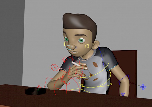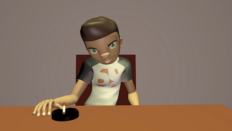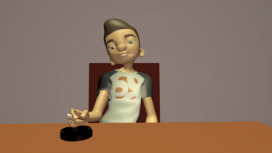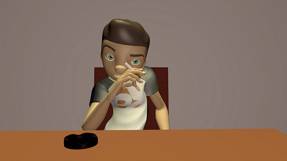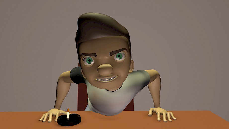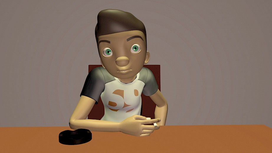Predator, is a short voice acting scene. The dialogue taken from the 11 seconds club website talks about how, just like a predator, it’ll wait for the perfect time to strike and kill you, and neither doctor nor medicines will be able to save you. I chose to interpret it to cigarettes and how smoking can kill you. The character's behaviour is based on an addicted teen trying to scare us of the effects of smoking playfully.