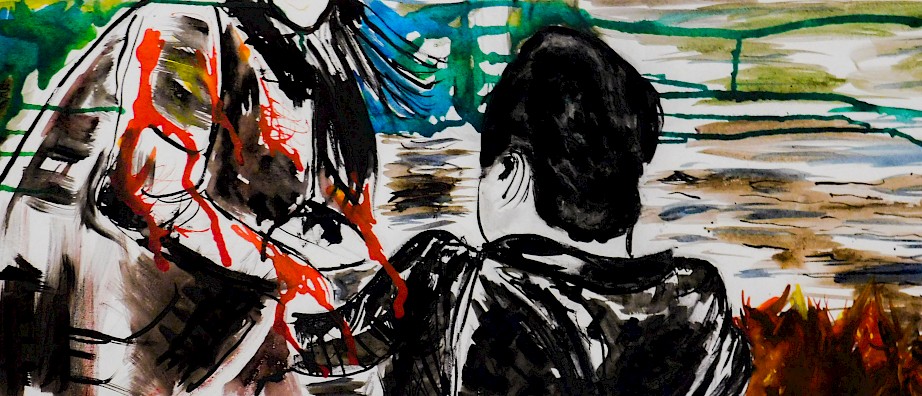 My practice is mainly based around films, cinema and the suggestion of narrative. Taking certain moments in time from classic films and representing them through abstraction and my own language of drawing. This interest in exploring films and specific narratives stems from my deep curiosity towards characters – a person's character, including; their soul, actions, thoughts, and feelings. I've also always been drawn to the darkness and sentimentality within certain films, which tend to induce a feeling of overwhelming emotions through the story's characters and the audience.