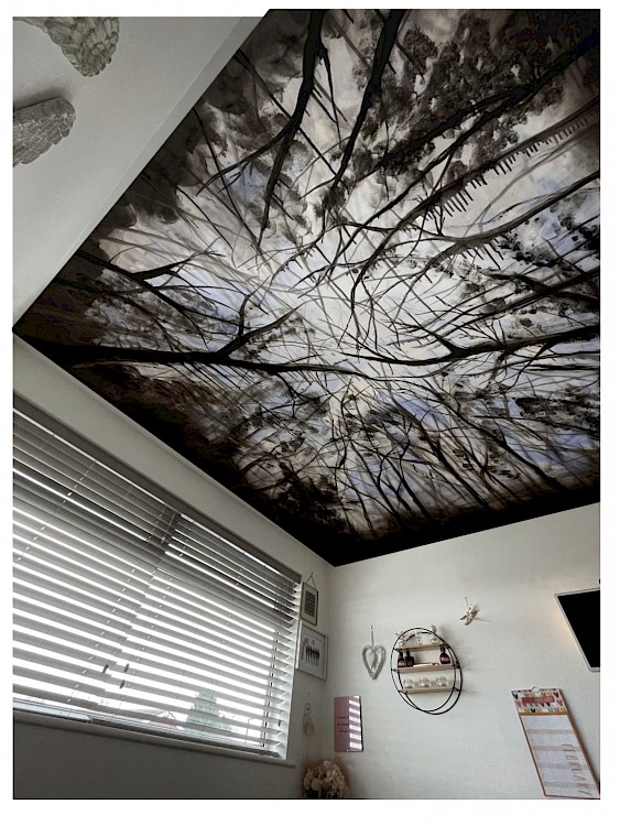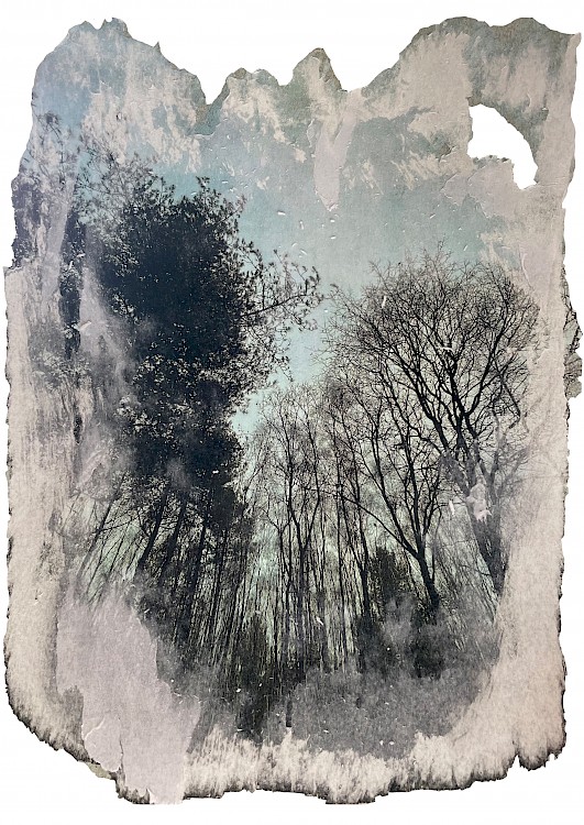 My work is about how you can piece together a variation of collated information to create a representation of a memory of a place. I use photographs, drawings, sounds, rubbings and material I find in the wood to inspire my paintings.