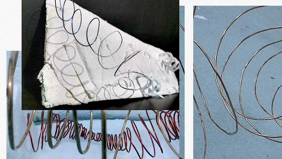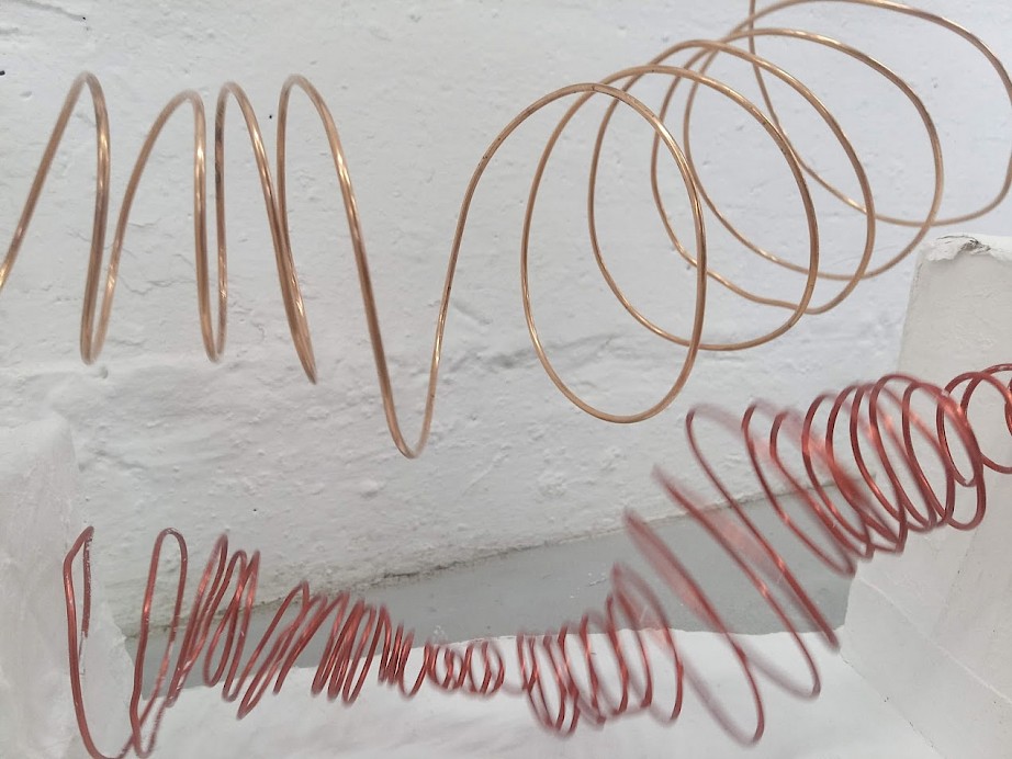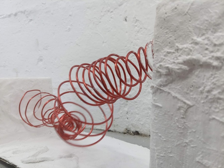 spirals of various shapes and also plaster blocks as a basis for installing a spiral. I want the viewer, while looking at the sculpture, to imagine any sound they see and try to hear it. I believe that each person looking at my sculpture will see a completely different type of sound, depending on the possibility of their imagination.