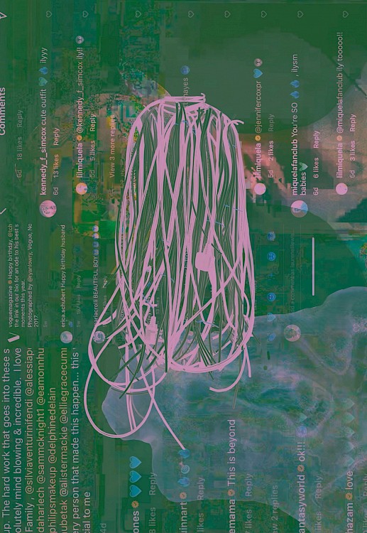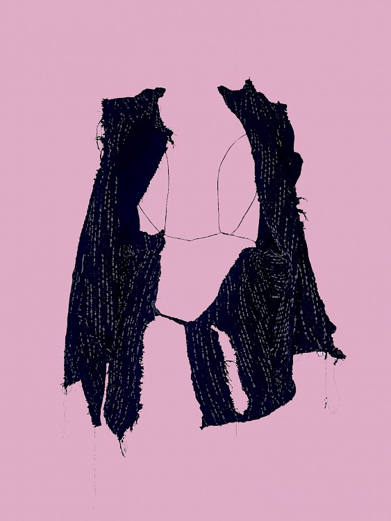 People are becoming less materialistic; we no longer require substance to be satisfied, instead we absorb the lives of others on social media to become aesthetically stimulated. I want to interpret this need for stimulation through glitched photography and unconventional fashion. As people spend more time scrolling through screens, we become immune to what we see. My work exists physically but will only ever be consumed virtually to further emphasise the importance of aesthetic and social media and how information will be consumed in the future. I want people to question if my work ever existed to begin with.