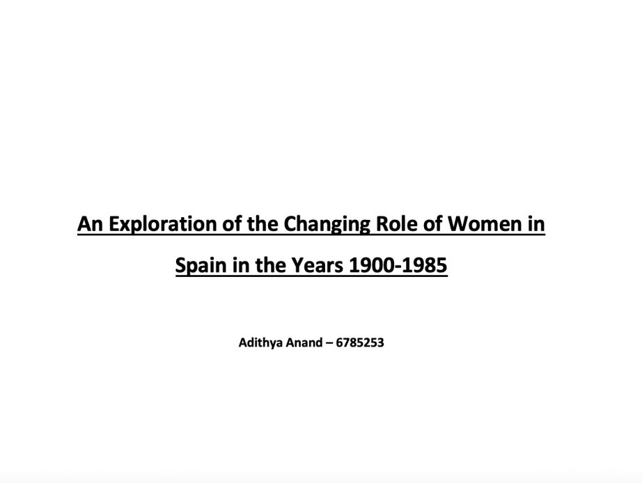 An Exploration of the Changing Role of Women in Spain in the Years 1900-1985: Dissertation